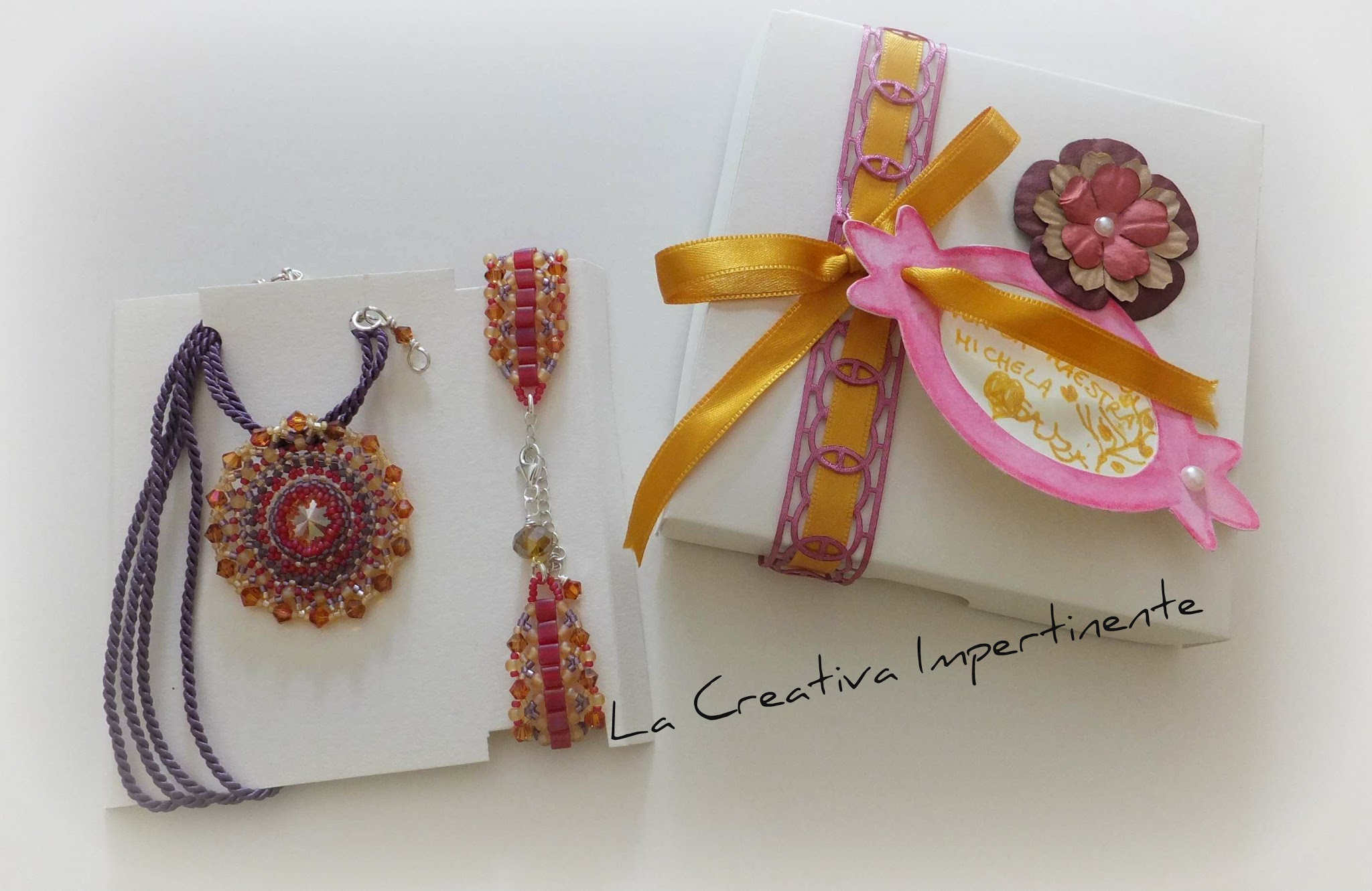 molto bella questa parure!!! 😀 Mi piace tantissimo anche la scatolina che hai realizzato 🙂 dà un tocco in più al tutto! Grazie per la citazione comunque e per i link al mio canale! 😀 Mi fa molto piacere che il mio bracciale ti sia stato d'ispirazione ^^ Un bacione ombre 😀
