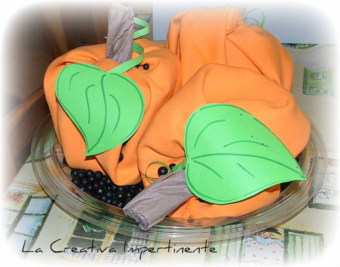 a decorare le zucchette delle foglie realizzate con il cartoncino verde.